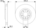 Criteri articolo Diametro esterno 305 mm Spessore disco freno 28 mm Spessore min. 26 mm Alt. 39,7 mm Foro interno-Ø 110 mm Tipo disco freno ventilato Diametro centraggio 70 mm N° fori 5   Disco...